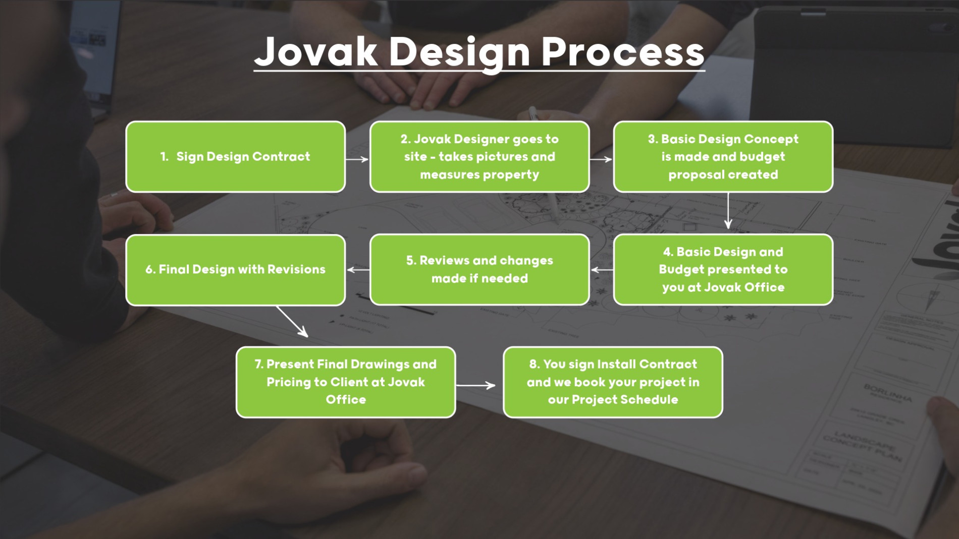 At Jovak Landscape & Design, our process is built to give you clear direction from the very beginning of your journey. Here’s how it works and how long it usually takes.
